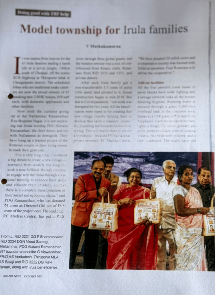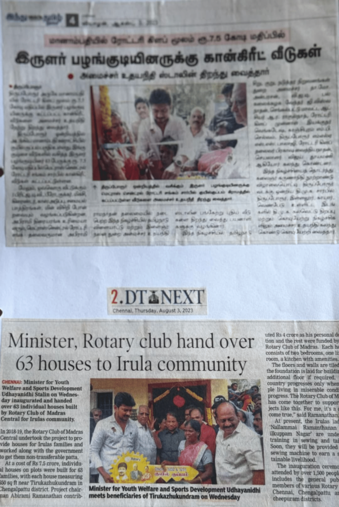 Sub:- Rotary club hand over 63 houses to Irula Community