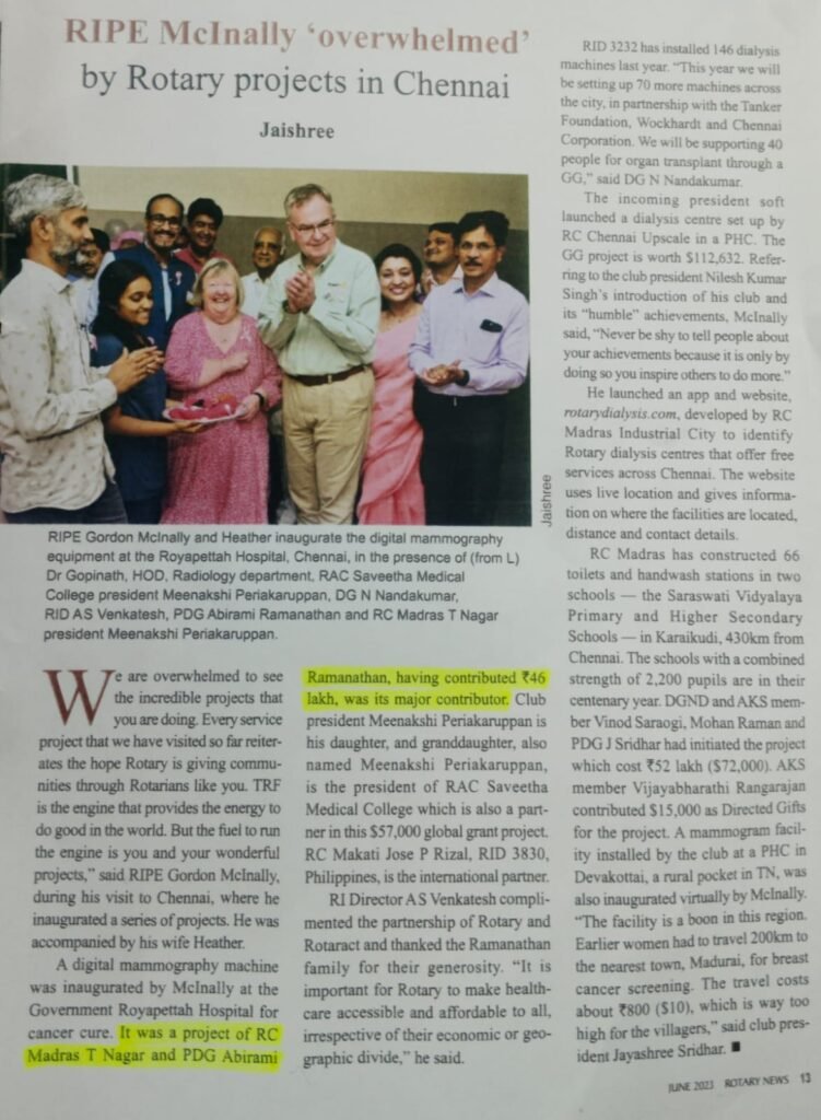 Sub:- RIPE McInally 'overwhelmed' by Rotary projects in Chennai