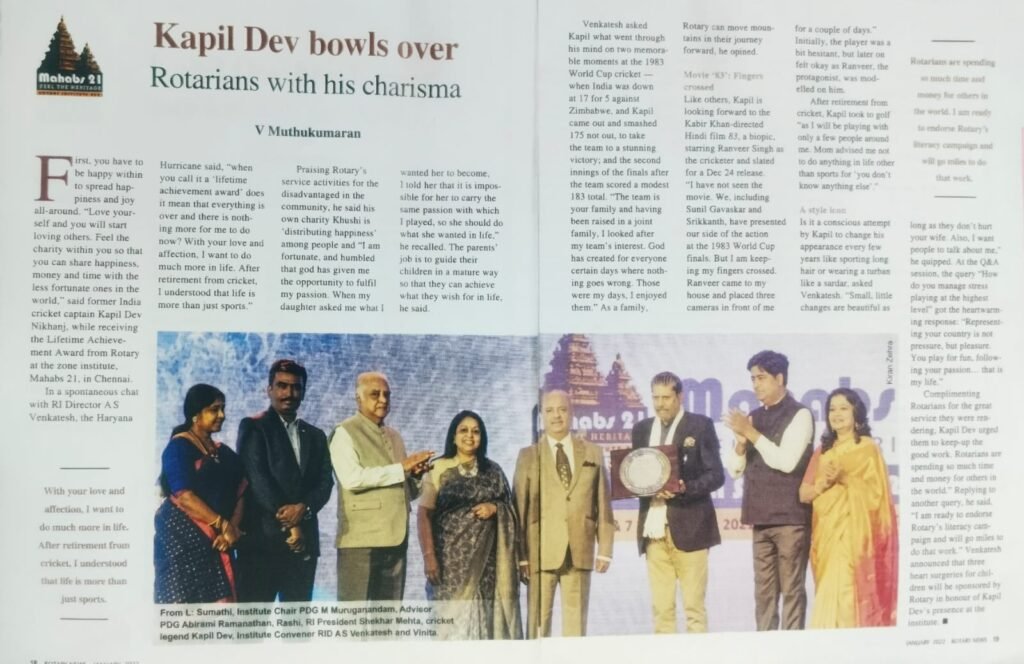 Sub:- Kapil Dev bowls Over Rotarians with his charisma